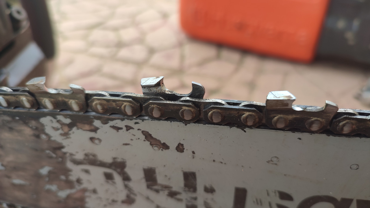 Nisam profi,rekreativno ja kemijam,godišnje oko 30m narežem s motorkom.1 slika je di je udaril lanac.Najvjerojatnije tu dobila simetrija lanca.3 slika sad tek vidim da vodilica u krasnom k...u vrh.